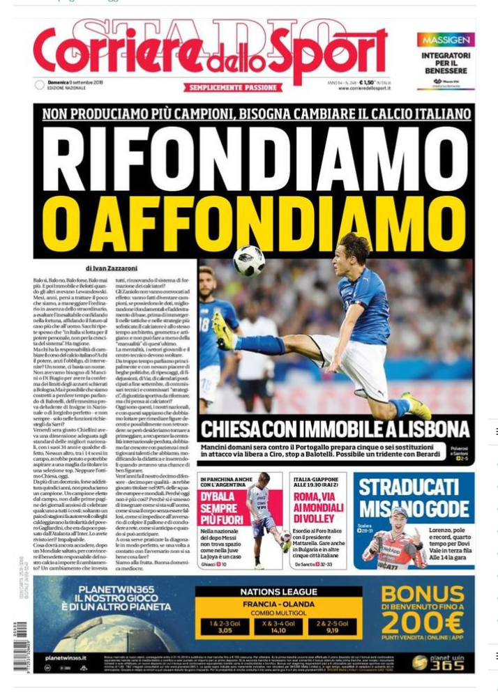 Rassegna: Rifondiamo o affondiamo Redazione 8 anni fa Le prime pagine dei quotidiani sportivi italiani DI DOMENICO VARANO Buongiorno amici di MilanCafe24, ecco le principali prime pagine dei quotidiani sportivi italiani: