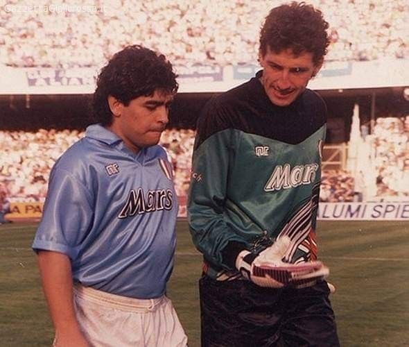 Stiamo parlando di: GIOVANNI GALLI, ha giocato dal 1986 al 1990 nel Milan e dal 1987 al 1990 è stato compagno di squadra del cigno di Utrecht. Marco realizzava gol a grappoli e alzava palloni d’oro. Galli, era conservatore, in rossonero toccò l’apice a Belgrado, parando due rigori alla Stella Rossa e proiettò il Milan oltre le nebbie balcaniche verso i quarti di finale…con il lieto fine del maggio 1989, replicando anche l’anno dopo. Successivamente passò al Napoli di Maradona e nel 90/91 giocò con Maradona, fu l’ultimo anno del Pibe prima della fuga dell’aprile del 1991. Riuscì a vincere con gli azzurri una Supercoppa Italiana con un perentorio 5-1 alla Juve. Ma il suo ricordo su entrambi è stato assolutamente positivo. In una diretta Instagram con Panariello, parlando di Maradona ricordava di quanto fosse forte e contemporaneamente una brava persona. La sua vita sregolata lo ha reso ancora piu’ icona, secondo l’ex portiere.